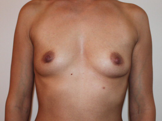 30 metų gimdžiusiai pacientei (ūgis 168 cm, svoris 57 kg) atlikta krūtų padidinimo operacija 335 ml apvaliais aukštos projekcijos implantais, atliekant inframarinius pjūvius po krūtimis ir talpinant implantus po laukomis.